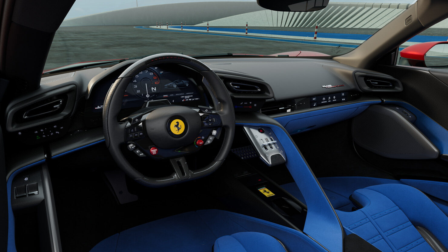 - Steering Wheel: Redesigned with physical buttons for critical functions and digital cluster for live telemetry